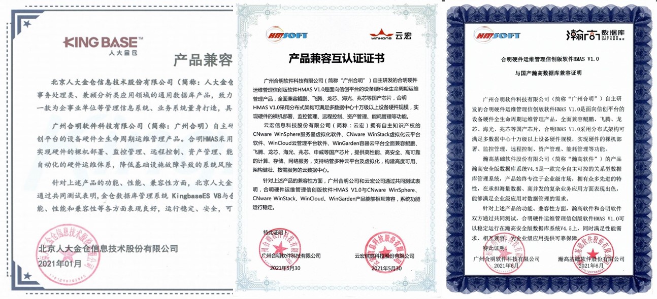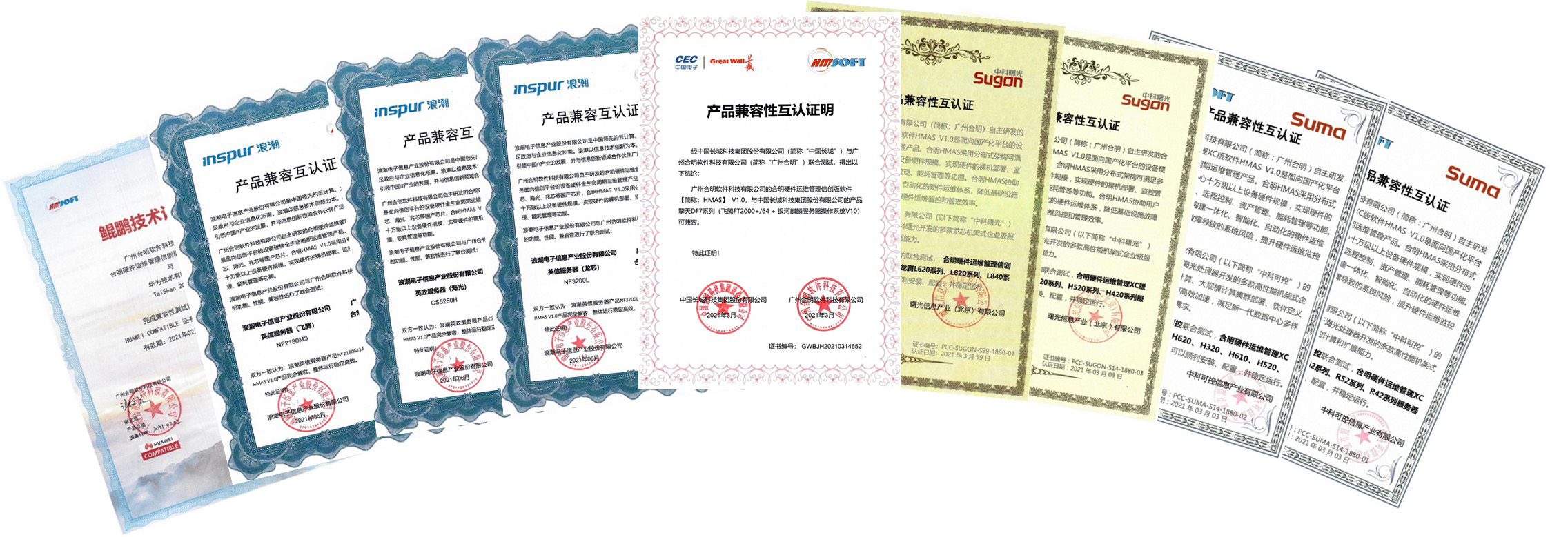 此外(wài),HMAS V1.0還(hái)全面适配國(guó)産化(huà)軟硬件(jiàn)産品,支持鲲鵬、飛(fēi)騰、龍芯、兆芯、海(hǎi)光(guāng)♥等CPU平台,并先後與麒麟軟件(jiàn)、統信UOS、中科(kē)方德、人(rén)大(dà)金(jīn)倉、瀚高(gāo)、華為(wèi)、浪潮、中科(kē)曙光(guāng)¶、長(cháng)城(chéng)、雲宏等十多(duō)家(jiā)國(guó)內(nèi)知(zhī)名IT服務商成功進行(xíng)了(le)多(duō)類别、多(duō)層次的(d>e)産品兼容測試認證工(gōng)作(zuò),獲得(de)了(le)20張以上(shàng)的(d&e)産品兼容互認證證書(shū),完成了(le)涵蓋芯片、國(guó)産操作(zuò)系統、數(shù)據庫、服務器(qì)以及虛拟化(huà)雲平台等廣泛信®創生(shēng)态産品兼容性認證測試。