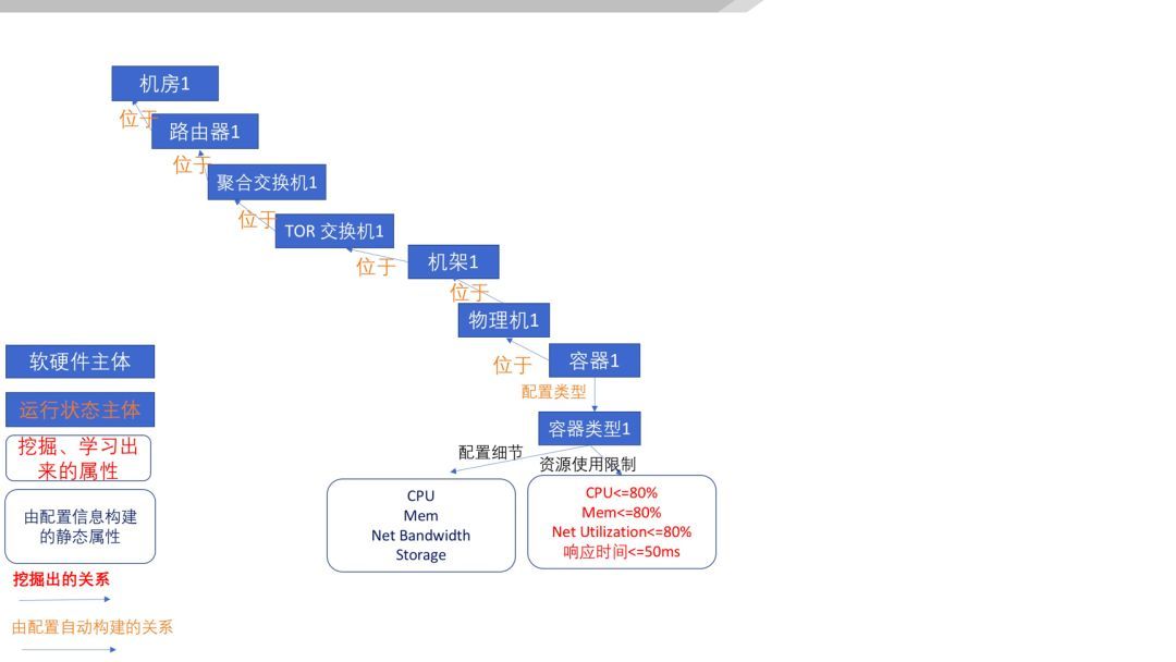 同時(shí),通(tōng)過挖掘學習(xí)出一(yī)些(xiē)動态屬性(白(bái)底紅(hón$g)字),比如(rú)容器(qì)類型1 的(de)資源使用(yòng)限制(zhì)(內(nèi)存使用(yòng)率最多(duō)能(néng)到(dào)多(duō)少(shǎo)),這(zhè)些(xiē)信息很(hěn)難靠人(rπén)力準确總結或推測,得(de)靠挖掘曆史數(shù)據獲得(de)。