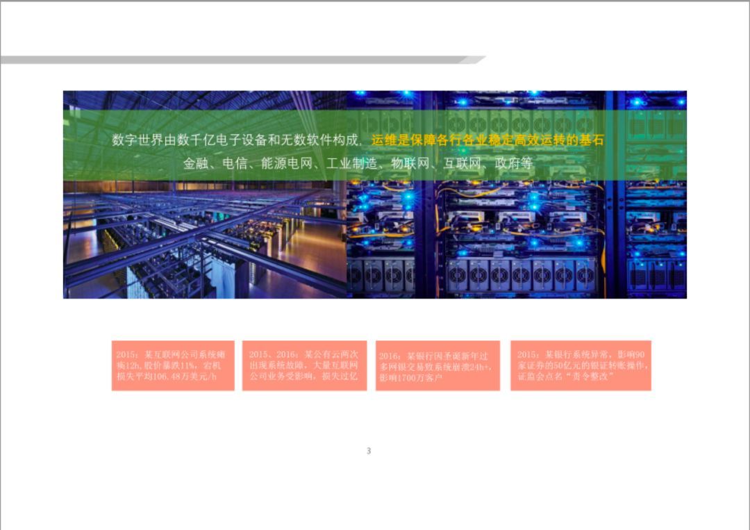 運維做(zuò)得(de)不(bù)好(hǎo),各行(xíng)各業(yè),無論是(shì)金(jīn)融、電(diàn)信、能(néng)源、工(gōng)業(£yè)制(zhì)造、互聯網、物(wù)聯網,都(dōu)不(bù)能(néng)高(gāo)效、穩定、可(kě)靠地(dì)運轉。