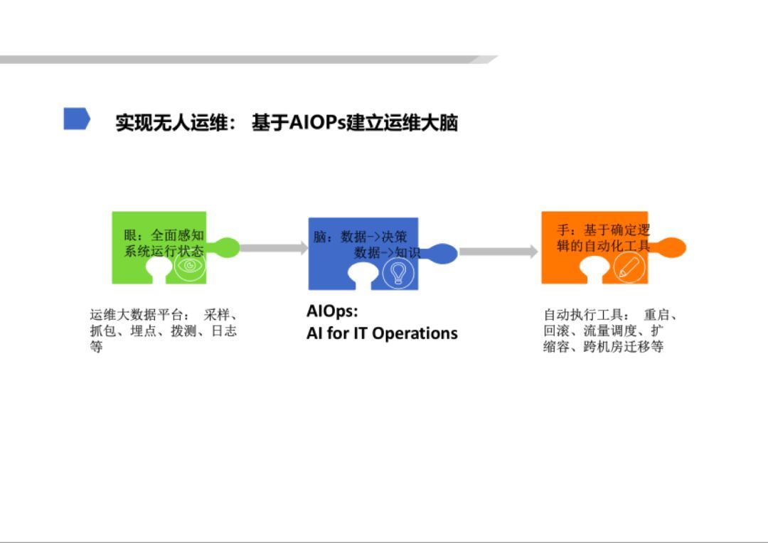 無人(rén)運維是(shì)我們的(de)終極目标,AIOps是(shì)我們通(tōng)往這(zhè)個(gè)目标的(de)手段。