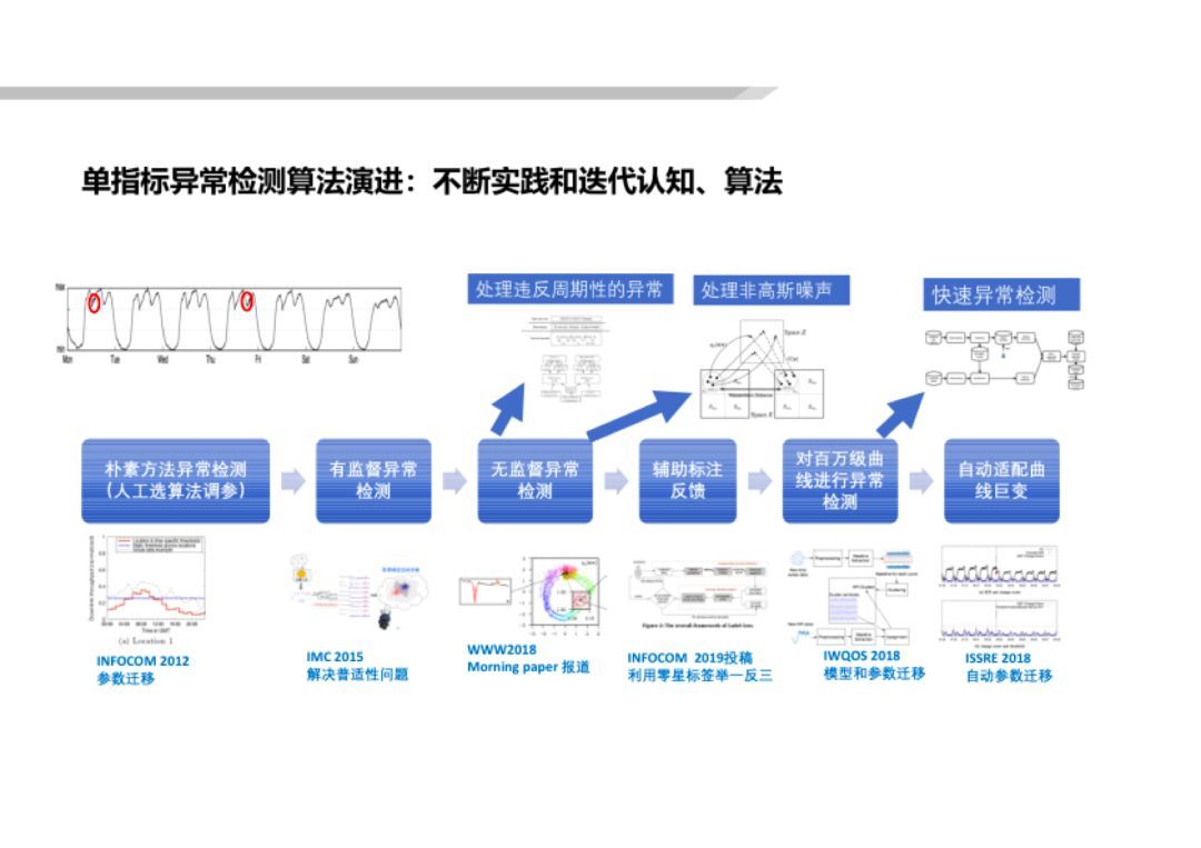 首先介紹我們在單指标異常檢測的(de)最新進展。我們實驗室在這(zhè)一(yī)領域的(de)科(kē)研成果在世界範圍內(nèi)處于領先的(de≈)地(dì)位。(見(jiàn)下(xià)圖)