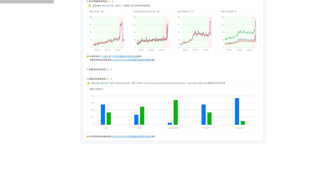 某一(yī)個(gè)具體(tǐ)日(rì)志(zhì)時(shí)間(jiān),發生(shēng)故障時(shí)第三個(gè)參數(shù)取值的(de)分(fēn)布<在故障之前和(hé)故障之後有(yǒu)顯著變化(huà),這(zhè)樣就(jiù)給運維人(rén)員(yuán)提供了( le)非常清晰的(de)提示和(hé)參考,指導人(rén)員(yuán)下(xià)一(yī)步該怎麽做(zuò)。