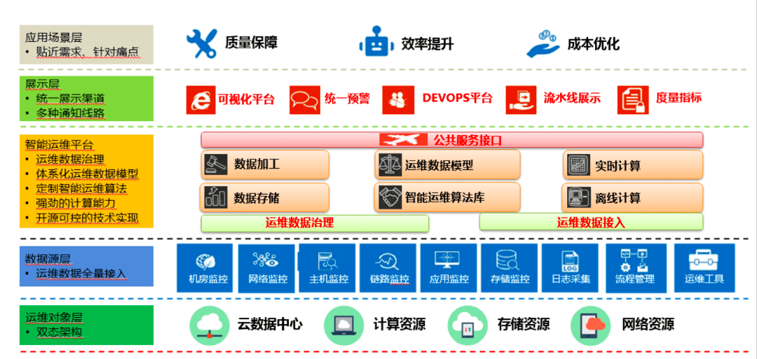 需要(yào)明(míng)确的(de)是(shì),面向終态是(shì)一(yī)種設計(jì)方法,在運維領域,有(yǒu)核心的(d¶e)四個(gè)能(néng)力域,分(fēn)别是(shì)安全、穩定、高(gāo)效、低(dī)成本。這(zhè)四個(gè)能α(néng)力域也(yě)匹配著(zhe)運維能(néng)力輸出的(de)四個(gè)階段,分(fēn)别是(shì)手工(gōng)運維、自(zì)動化(huà)運維、DevOps、AIOps。在這(zhè)四個(gè)階段中,運維的(de)對(duì)象始終貫穿了(le)系統、用(yòng)戶、業(yè)務、業(yè)态±,因此面向終态重點在于終态的(de)對(duì)象和(hé)範圍。