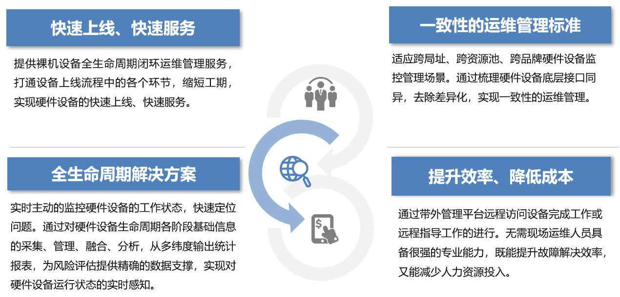 合明(míng)裸機(jī)自(zì)動化(huà)部署管理(lǐ)平台是(shì)一(yī)套适用(yλòng)于帶外(wài)(網管數(shù)據和(hé)業(yè)務數(shù)據網絡物(wù)理(lǐ)分(¥fēn)離(lí))和(hé)帶內(nèi)(網管數(shù)據和(hé)業(yè)務數(shù)據在同一(yī)生(shēng)産網絡)不(bù)同網絡環境的(de)部署平台,為α(wèi)客戶提供在同一(yī)套平台實現(xiàn)針對(duì)不(bù)同架構/型号的(de)↕裸機(jī)服務器(qì),進行(xíng)自(zì)動化(huà)、标準化(huà)、模闆化(huà)、批量化(huà)的(de)多(duō)種操作(zu ò)系統部署解決方案,同時(shí)還(hái)支持RAID/BIOS的(de)批量配置及固件(jiàn)升級,并可(kě)提λ供各階段流程的(de)接口和(hé)不(bù)同平台實現(xiàn)無縫對(duì)接,确保裸機(jī)上(shàng)線前進行(xíng)規範化(huà)、流程₽化(huà)的(de)操作(zuò)系統/RAID/BIOS的(de)部署。